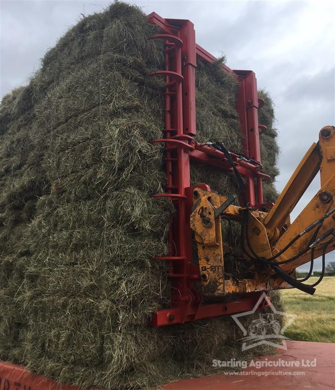 These Grabs have been designed by ourselves to handle thousands of Big Square Bales per year. The bottom bale is spiked while the others above it are pulled back tight against the frame with the side claws. The top of the frame extends to allow upto 3 MF 2190 (Full Hesston) or equivilant bales to be safely handled.